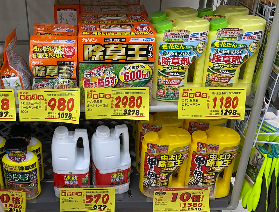 また、除草剤全般に言えることとして、ペットのいるご家庭では安全のため天然成分配合の除草剤(効果は農薬タイプよりも弱いですが)や木酢液を原液でふりかける方が安心です。