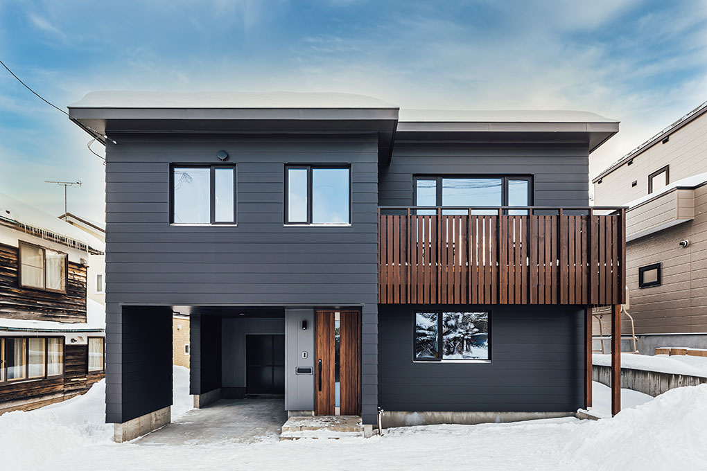 Y様邸は、公園が近い閑静な住宅地の一角にあります。本州の大都市圏出身のY様は、当初「間口が狭い土地でも良いから」とおっしゃっていました。間口が狭い土地だと雪処理が大変なので、粘り強く良い条件の土地を探してほしいとアドバイスし、今回の土地と出会いました。十分に広い間口で、雪処理も楽にできます。