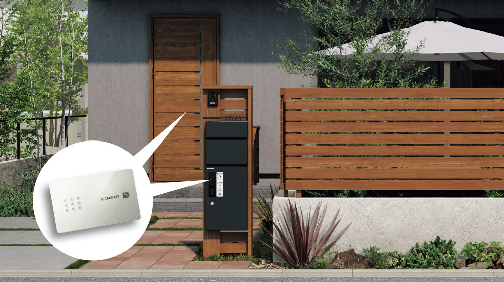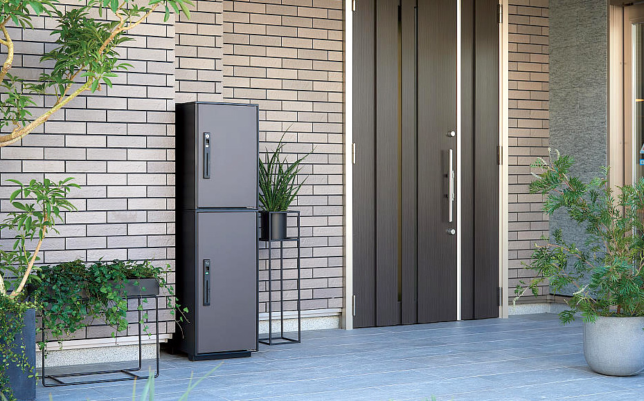 スマートキーで玄関ドアも宅配ボックスも開けられる(YKK AP「ルシアス シリーズ/宅配ボックス1型」)