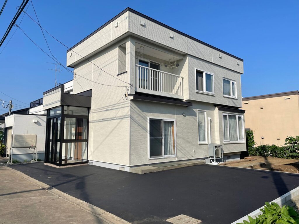 併せて、雑草除去の負担を減らすため、外構をアスファルトで舗装しました。