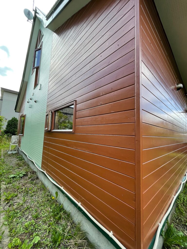 屋根の錆の除去と塗装も実施し、木目の美しい外観がよみがえりました。