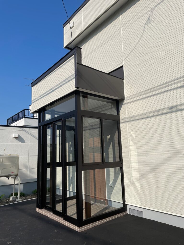 そこで、玄関の屋根の勾配を緩やかにしてフラットに近い状態に改修。落雪しないようにしました。また、玄関ドアを交換し、風除室も新設しました。