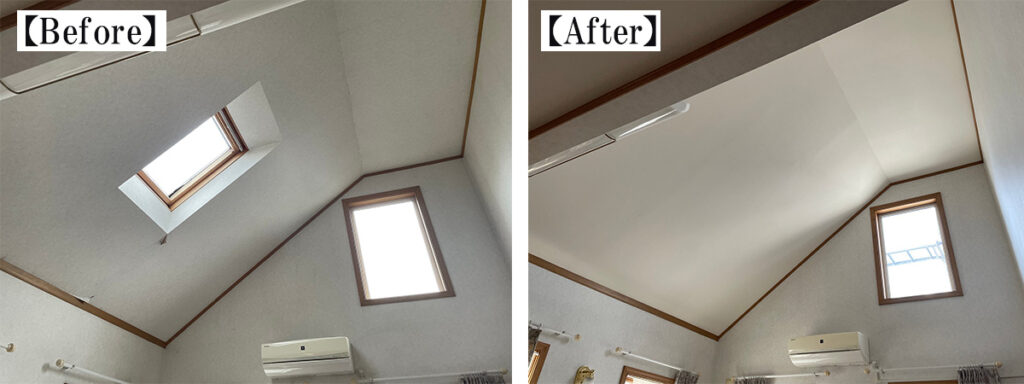 そのため、天窓を撤去して天井を塞ぎました。
