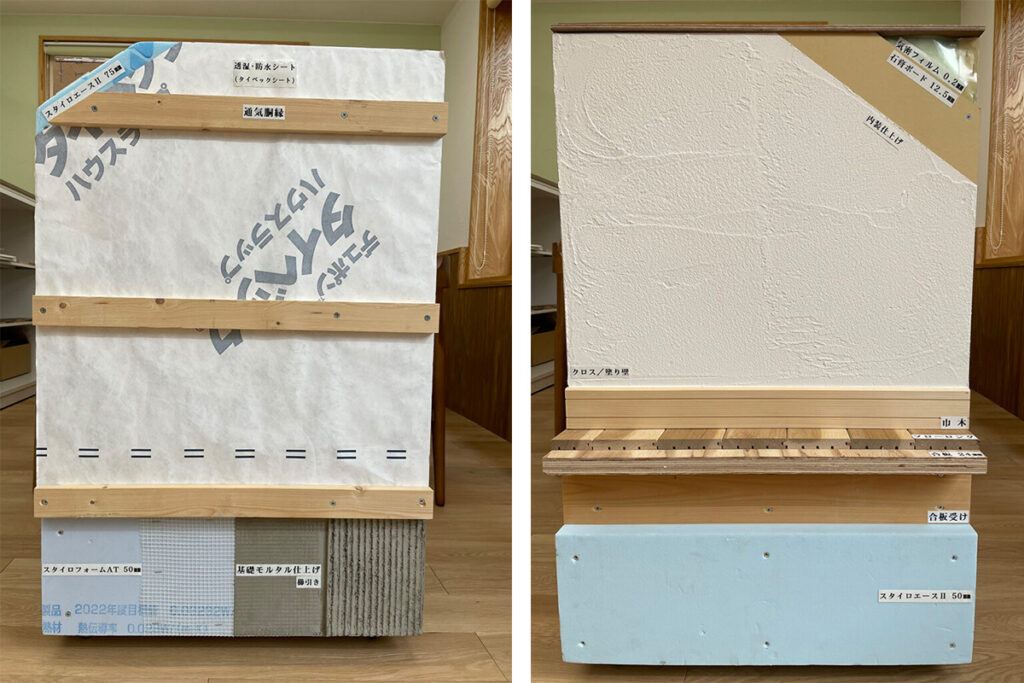 当社の事務所には、標準仕様としている壁の構造の模型をご用意しています。