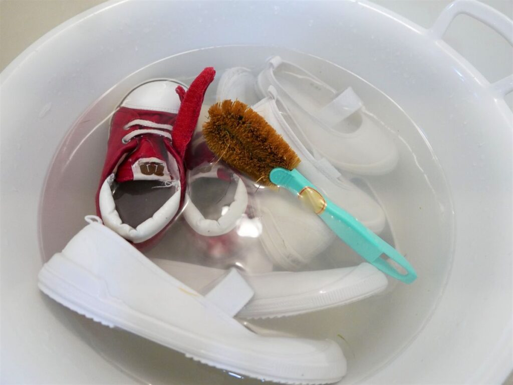 やり方はとても簡単。40~60℃ぐらいのお湯にオキシクリーンを溶かし、その中に汚れた物を漬け置きしておくだけです。しばらくして、流水ですすぐと、頑固な汚れもみるみる落ちてしまいます。