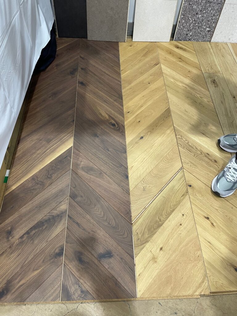 室内をオシャレに演出するヘリンボーンの床は徐々に人気が高まっています。従来は短くカットした床材をV字になるように組み合わせて重ねながら貼っていくため、熟練の技術が必要で施工に時間がかかっていました。こちらの商品はすでにヘリンボーン仕様に床材が貼られているので、価格を抑えて今まで以上にお客さまのご要望を叶えられそうです。