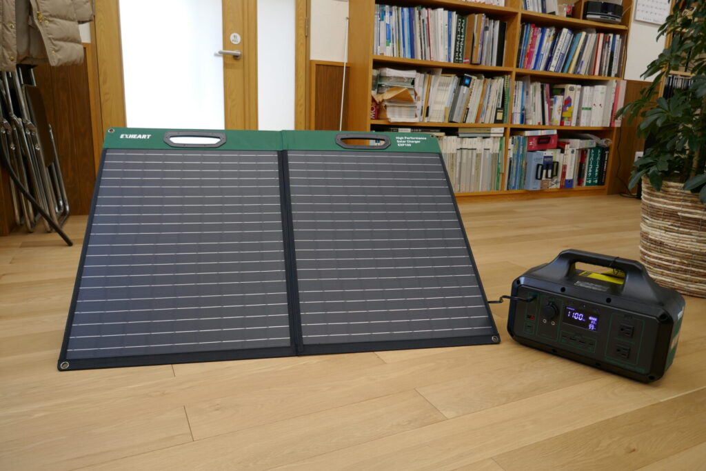 数ある展示品の中で注目したのが非常用防災設備です。2018年の北海道胆振東部地震の際には道内全域が停電に見舞われ、札幌も丸3日間停電になりました。この時の経験から、必要最低限の生活を送れる電源装置として、折り畳み式のソーラーパネルとポータブルバッテリーを購入しました。