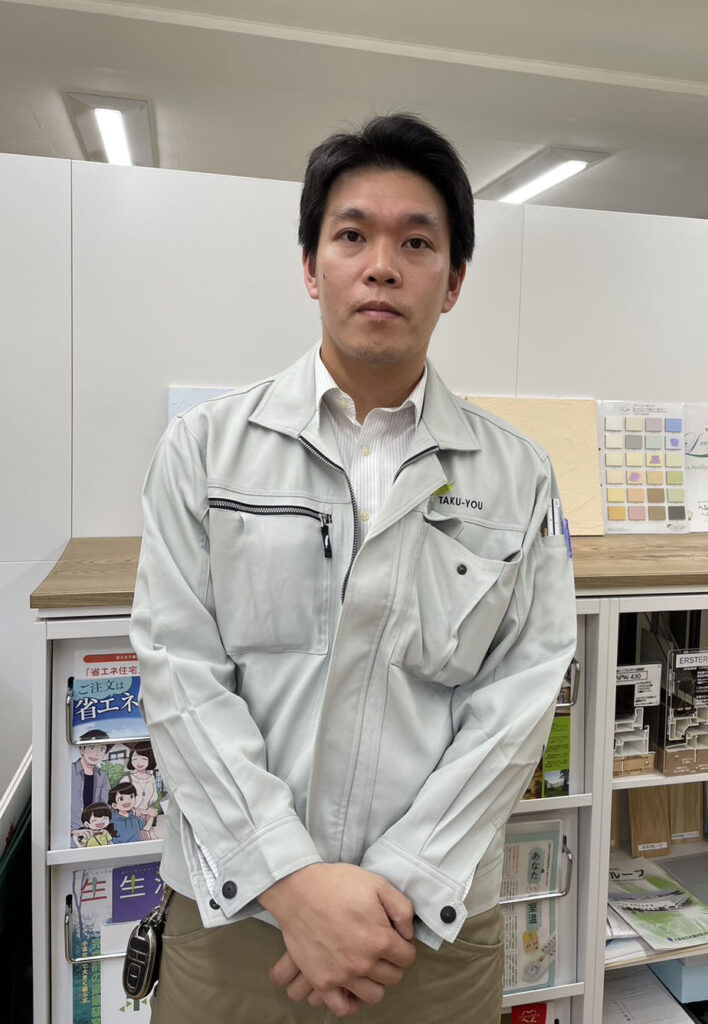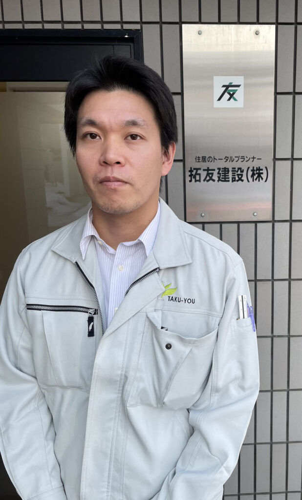 大工をしていた頃、建築現場の見学にいらっしゃったお客さまと直接お話しする機会があり、ご要望を伺いながら造作家具の位置や高さなどを調整したことがありました。完成時には、お客さまにとても喜んでいただいたことがとても心に残っています。拓友建設でも「お客さまに喜んでいただくこと」を一番に考え、家づくりに取り組んでいきたいと思っています。