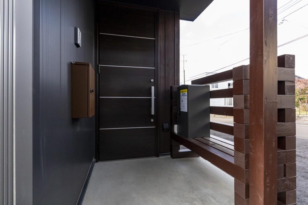 先ほどのFさま邸では、家の土台に使う腐りにくい木材を活用して玄関先にベンチを造作。そのベンチの端に宅配ボックスを設置しました。ベンチと組み合わせたことで、鍵を開ける間、宅配ボックスから取り出した荷物をちょっと置いておくのに重宝します。