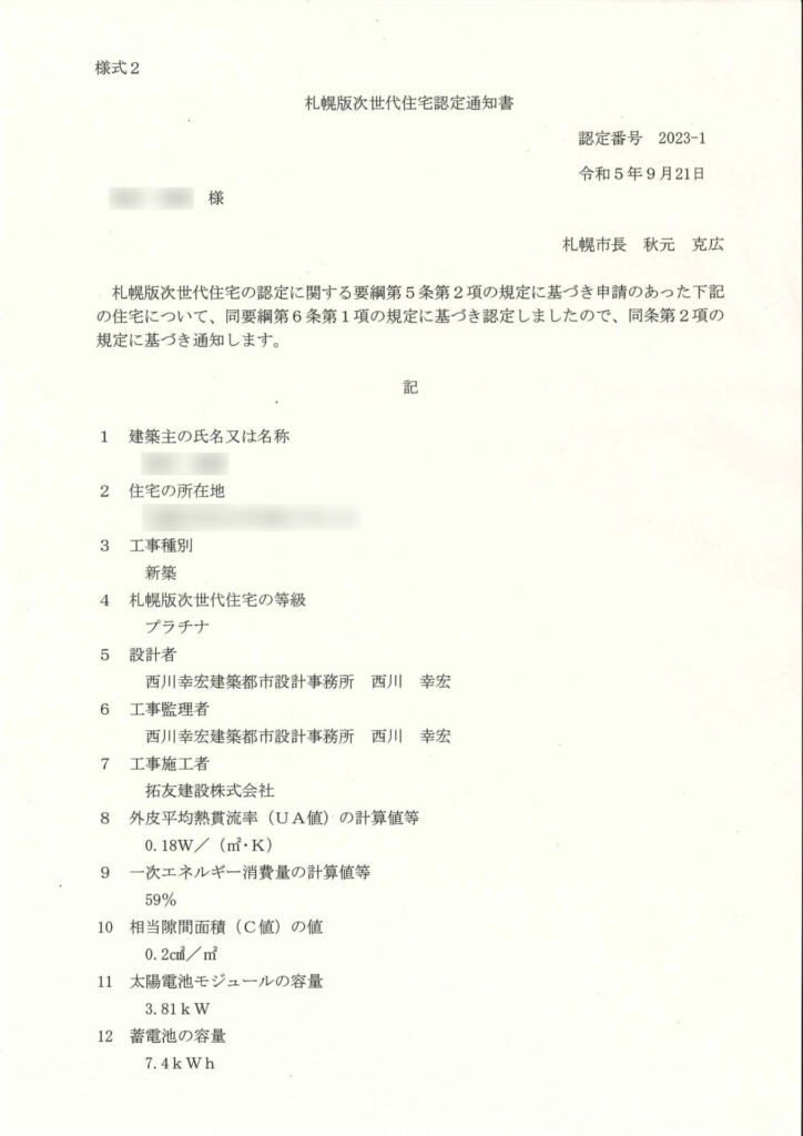 先日もお伝えしましたが、札幌版次世代住宅基準において最上位の「プラチナ」認定を初めて取得した住宅になります。→こちらのブログにてお知らせしています。