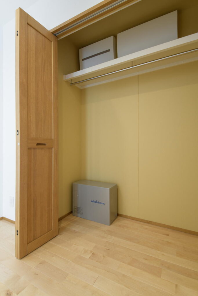 ちなみに、蓄電池の設置場所はクローゼットの隅のほう。容量は7.4kWhなのにとてもコンパクトなので、クローゼットの収納力そのままにお使いいただけます。