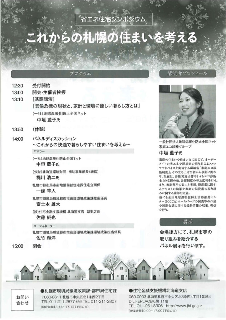札幌市で「省エネ住宅シンポジウム」が開催されます ※申込期限12月14日(木)