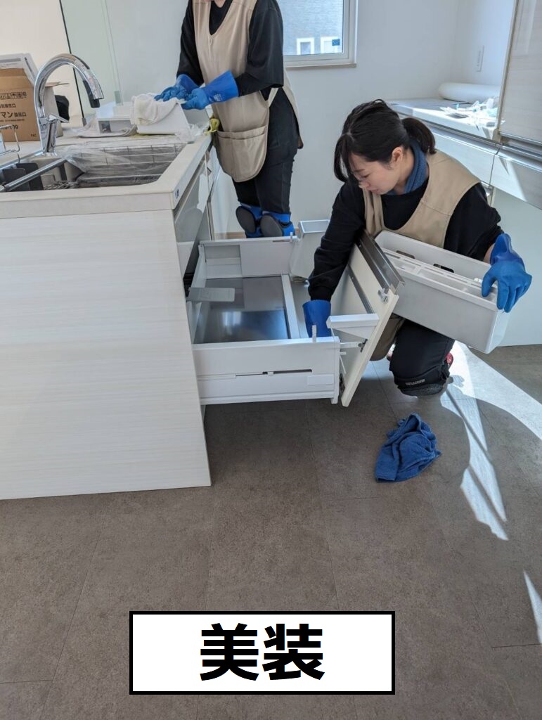 全館空調ユニット内や、キッチン引き出しの中など家じゅう隅々まで綺麗に拭き上げています。
