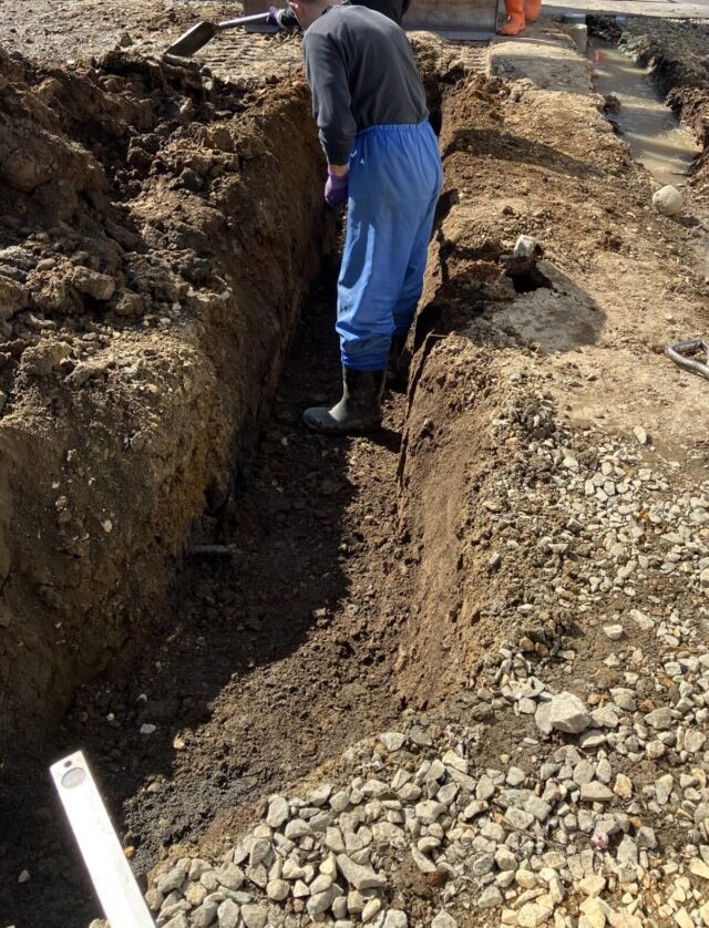 融雪槽(枡)が入る大きさまで掘削している様子