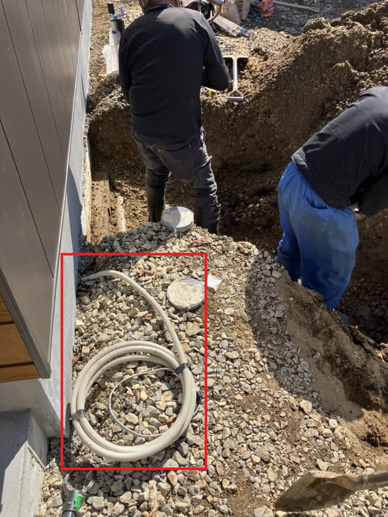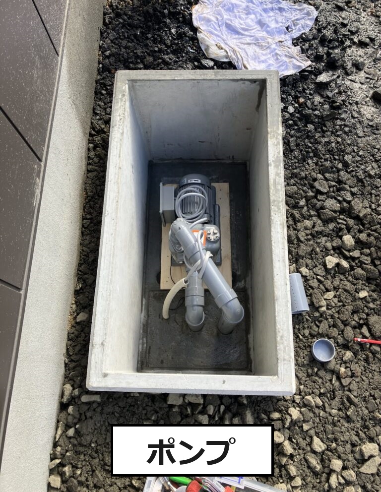事前にポンプを設置する箇所に電気の配線をしておきました。
