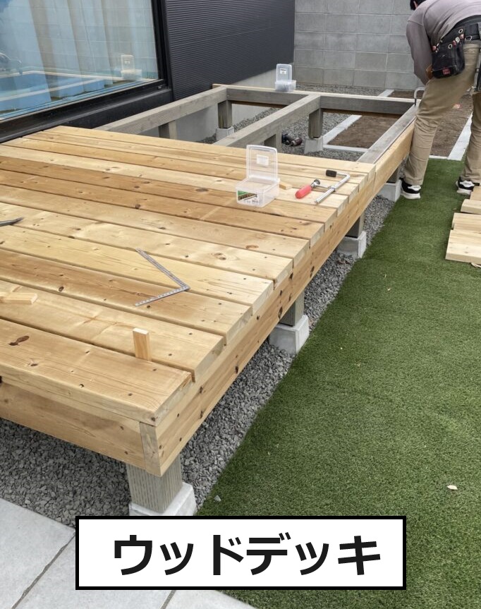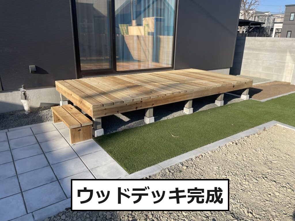 防腐土台とツーバイ材を使用しデッキが完成しました!!