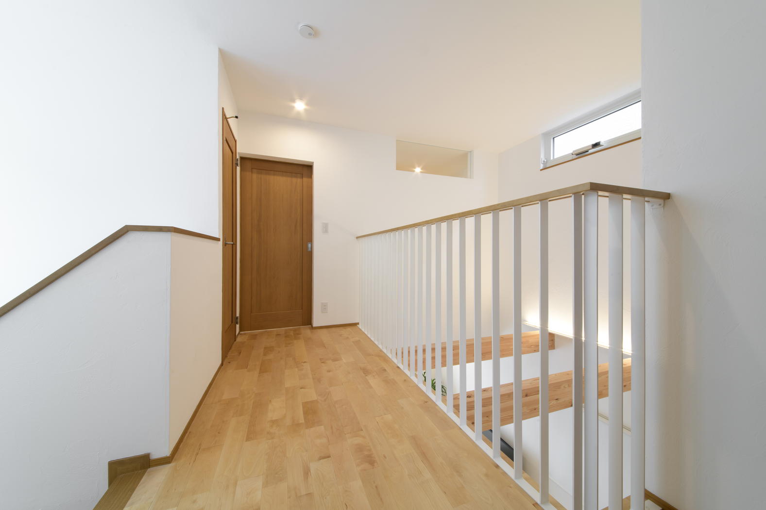採光があり、明るくて広い2階の廊下は、妻のお気に入りの空間です。