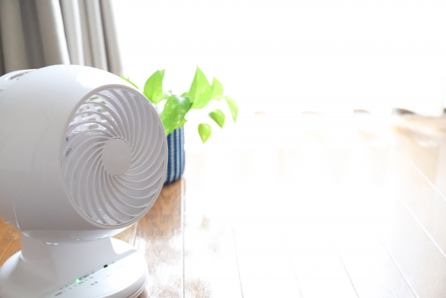 また、暑いと設定温度を下げたくなりますが、代わりに風量を上げて体感温度を下げるのも効果的です。設定温度を下げるとエアコンの圧縮機に負荷がかかってしまいますが、風量アップによる電力はそれよりずっと少なくて済みます。サーキュレーターなどを使って涼しい風を部屋全体に行き渡らせるのも効果的です。