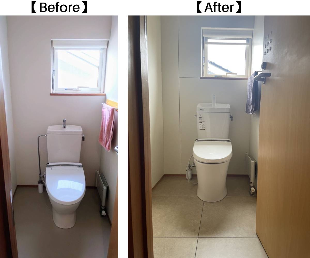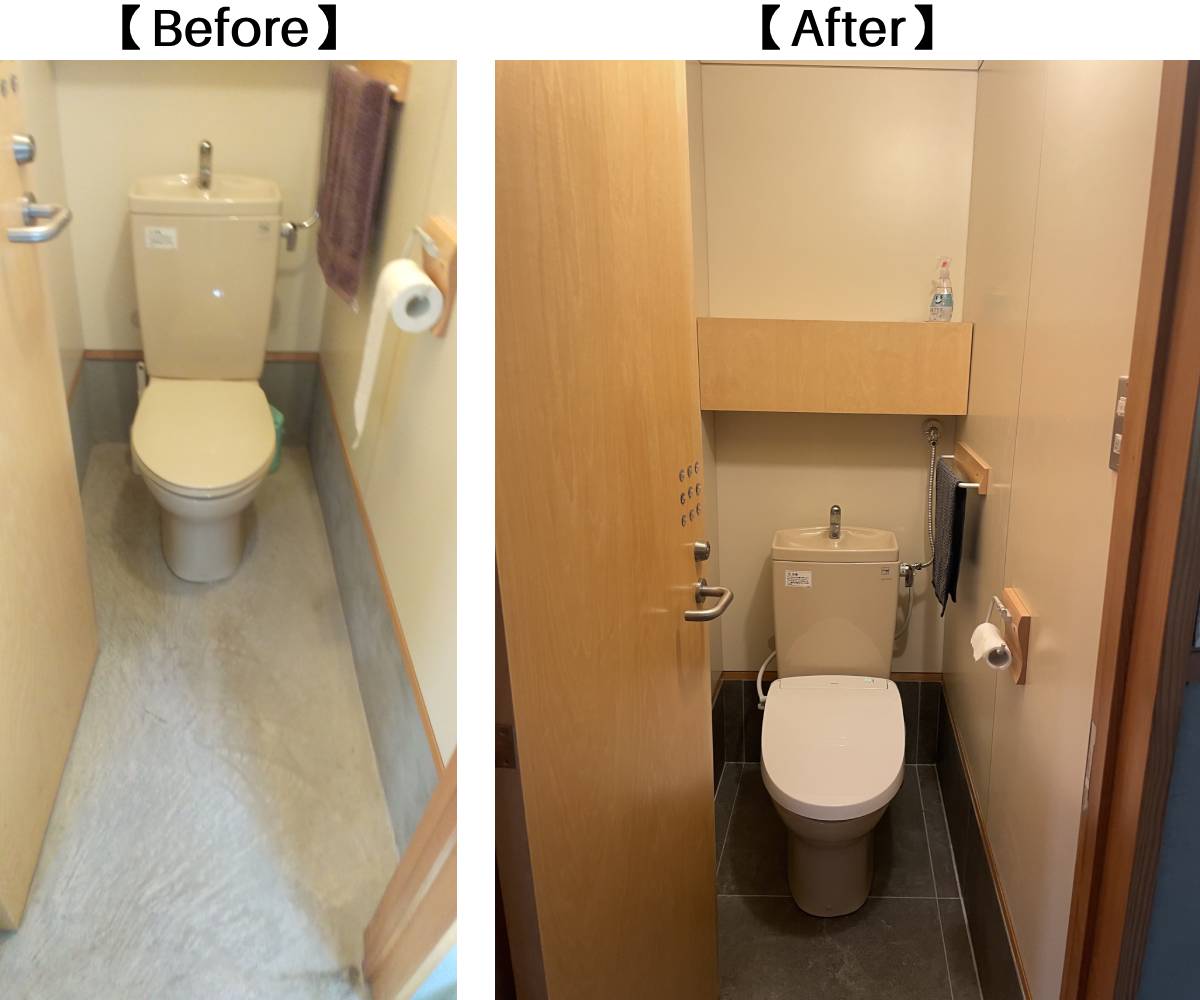 1階トイレは温水洗浄便座を交換。こちらの床にも工房と同じタイルを張ります。