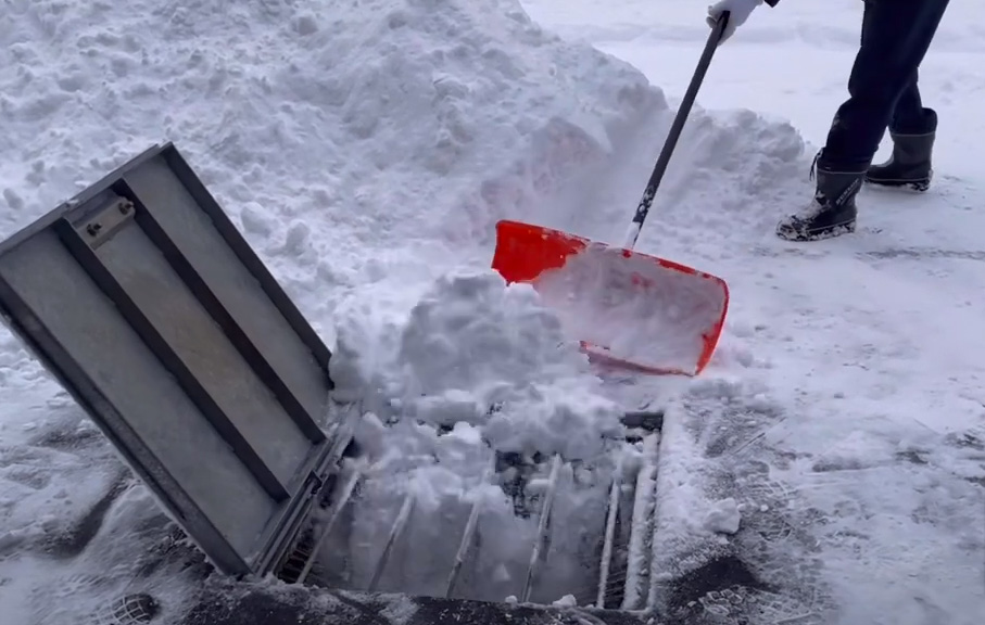 作業がラクチンなのも魅力のひとつです。雪を積み上げておく必要がなく、スコップで投雪口に雪を押し込んでいけば、あっという間に作業は完了!冬の重労働が軽くなる融雪槽もこの機会にぜひご見学いただき、実際にご体験いただければと思います。