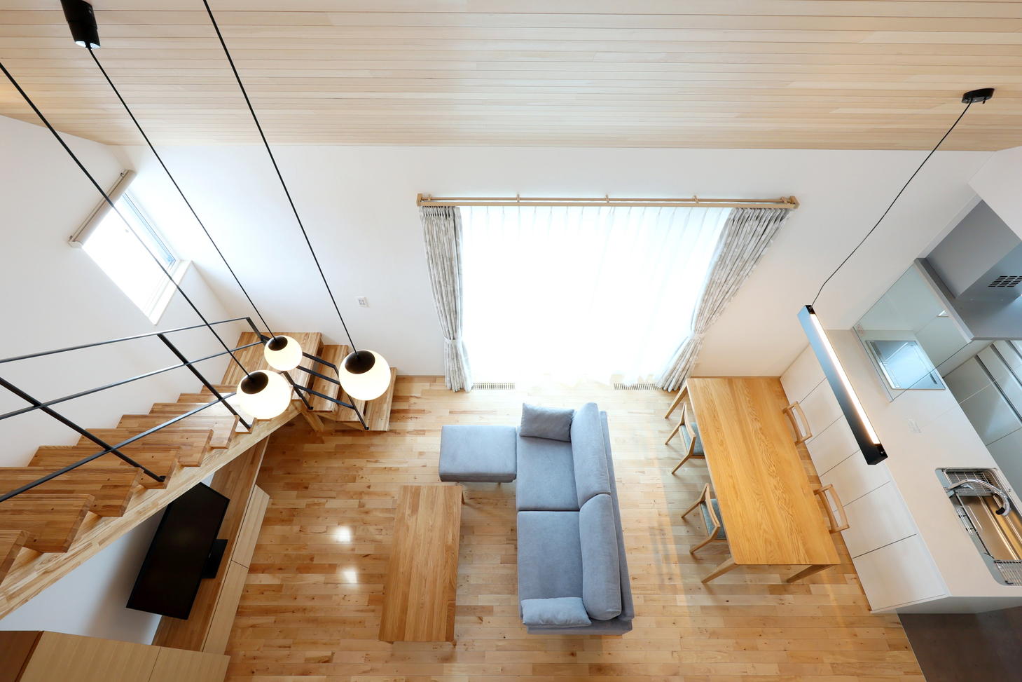 オーナー様のお宅では汎用品のルームエアコン1台のみで家全体の暖房・冷房を賄っています。その絶対条件が、住宅の超・高断熱・高気密化です。こちらの住宅は札幌版次世代住宅基準の最高ランク「プラチナ」を取得しており、断熱性能(Ua値)は0.18以下。国が定めた断熱等性能等級の最高ランク「7」を上回る水準です。こうした住宅性能があることで、エアコン1台での暖冷房が実現しています。
