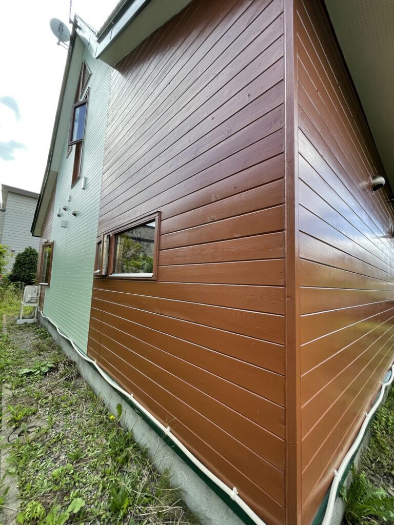 外回りの修繕が完了!木目が際立つ美しい外観になりました。
