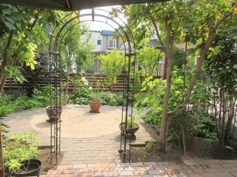 こちらは札幌市にお住まいのAさま邸のお庭です。黒土を入れ、枕木を敷くなど、入居から10数年かけ、丹精込めてお庭づくりをしてこられました。
