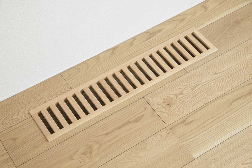 当社の住宅では、外壁や布基礎に設けた給気口から床下に外気を入れています。ここで気を付けるポイントが、夏は床下が冷えているため空気が動きにくいという点です。床下の空気が動きにくいと湿度が上がり、結露やカビが発生しやすい状態になる事もあります。