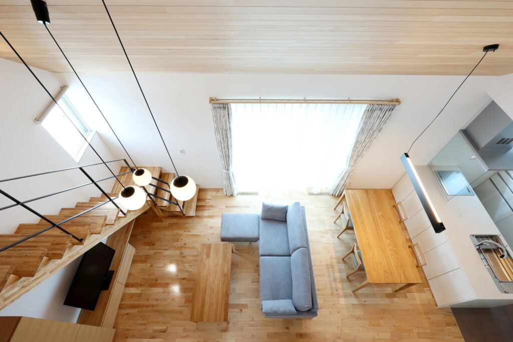 札幌版次世代住宅基準の旧基準(2023年3月末まで)の最上位「トップランナー」認定のTさま邸。Ua値は0.17で、新基準「プラチナ」相当の断熱性能です。