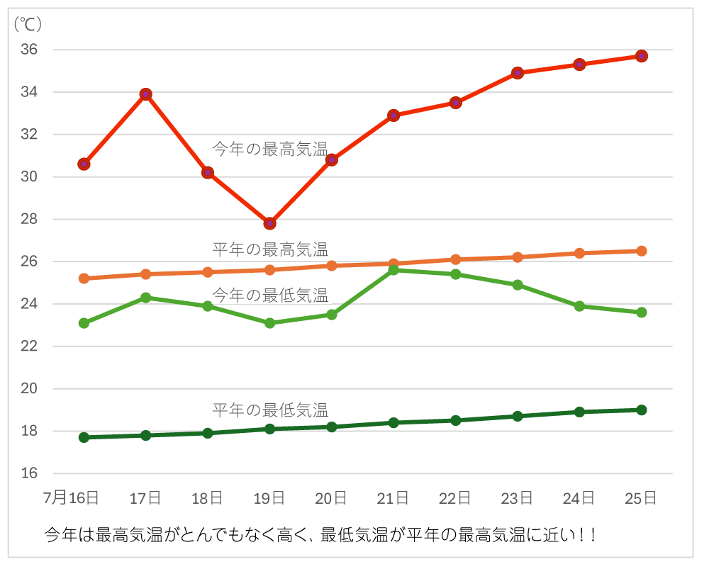 さて、最高気温34.9℃、最低気温25.6℃!!真夏日と熱帯夜が連続した7月下旬に妻沼宅はどうなっていたのでしょうか??