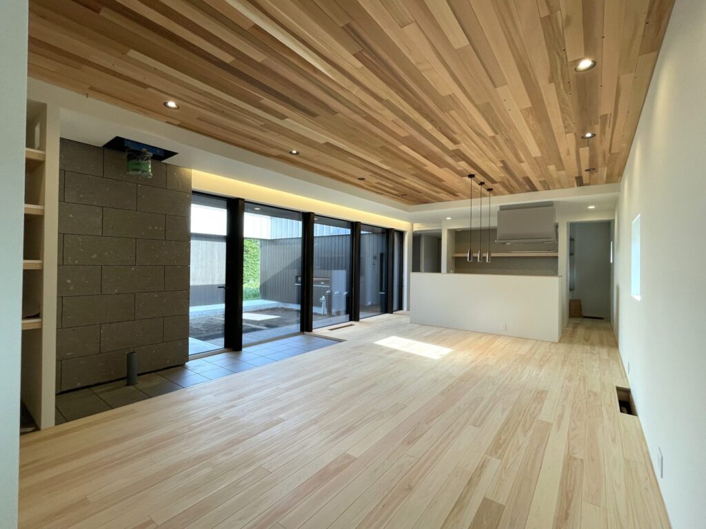 天井の板張りが素敵!来週、薪ストーブが入ります✨