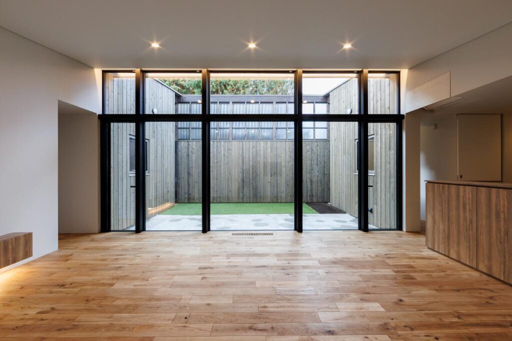 高性能窓の一例として挙げられるのが、当社で施工したTさま邸(https://www.takuyou.jp/works/works-1253/)のトリプルガラス入りのテラス窓。これだけの大開口の窓ですが、「窓際に寄ってもヒンヤリしない」そうです。