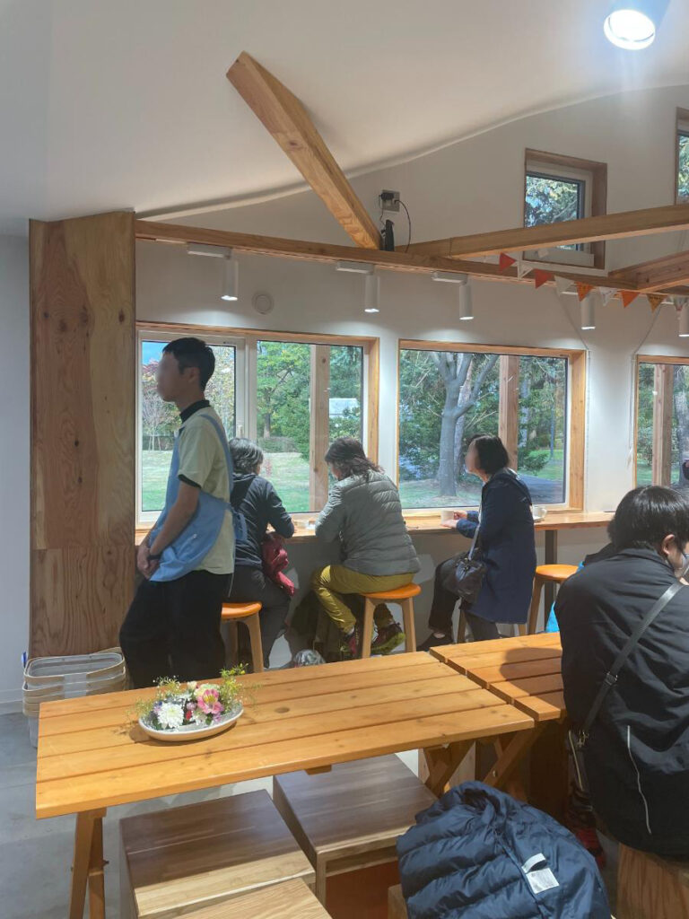 窓ぎわは公園を眺めながら食事ができるカウンター席になっています。皆さん、思い思いの時間を楽しんでいらっしゃいました。