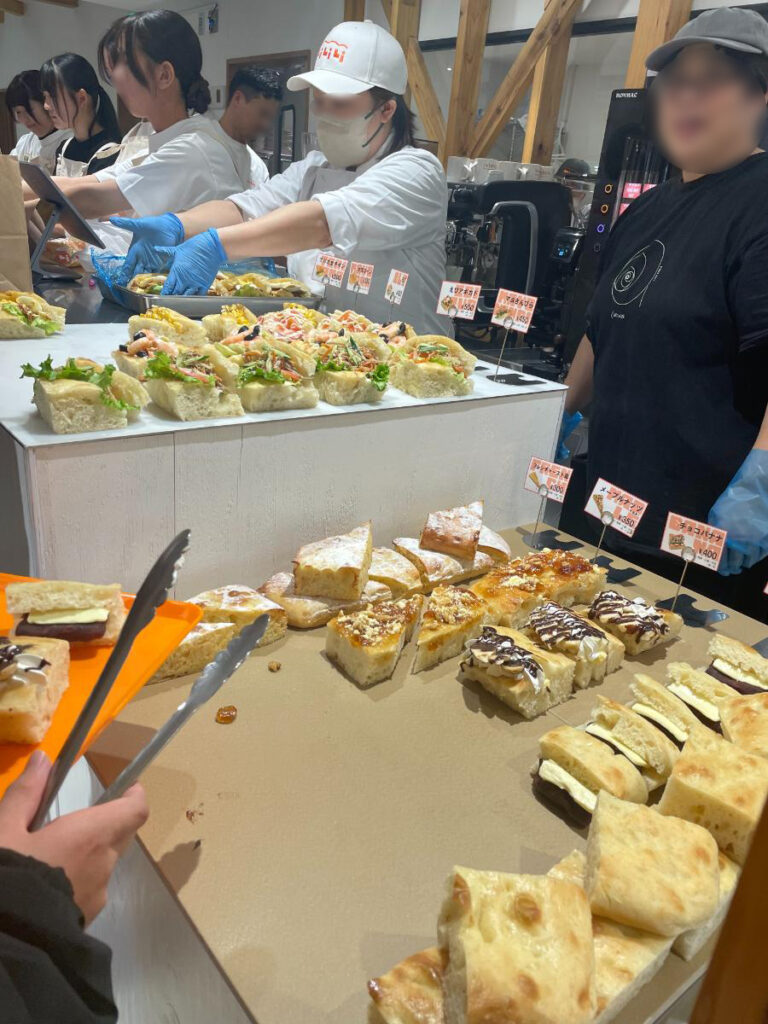 フォカッチャサンドは、お総菜系からスイーツ系まで、種類が豊富!どれも、とてもおいしそうです。