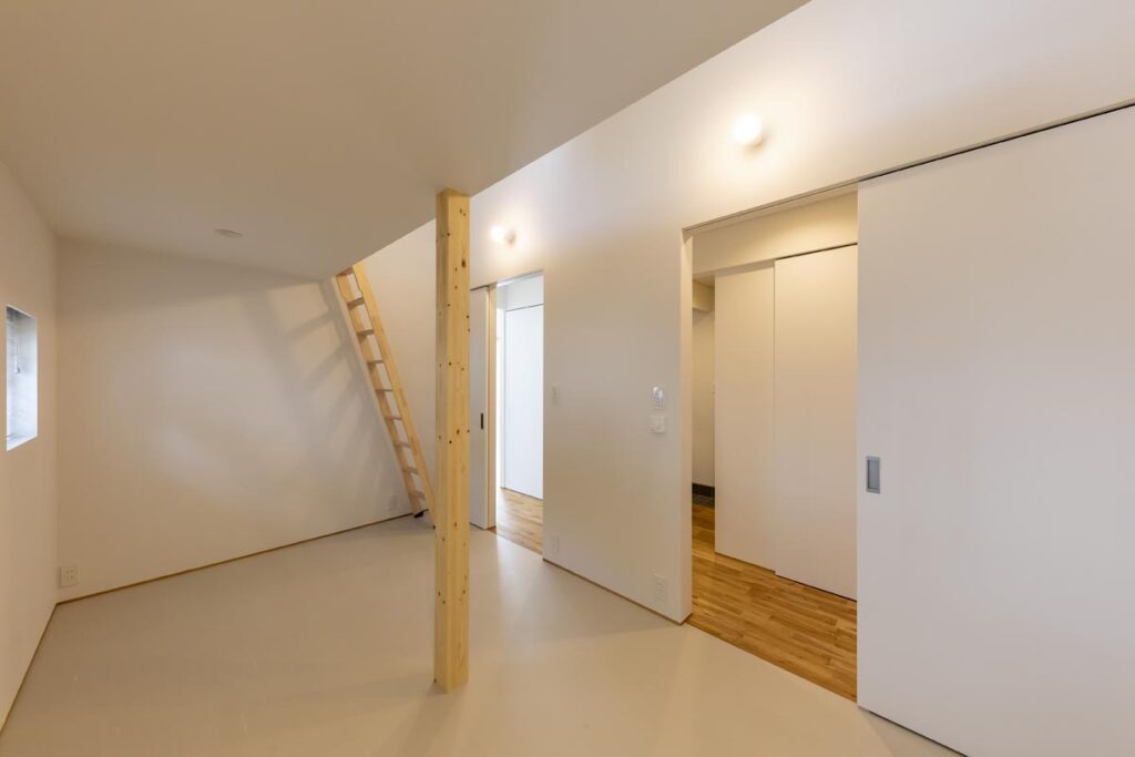 入り口を2カ所に設置しており、将来、柱のところに壁を造作すれば、2部屋の個室になる仕様です。