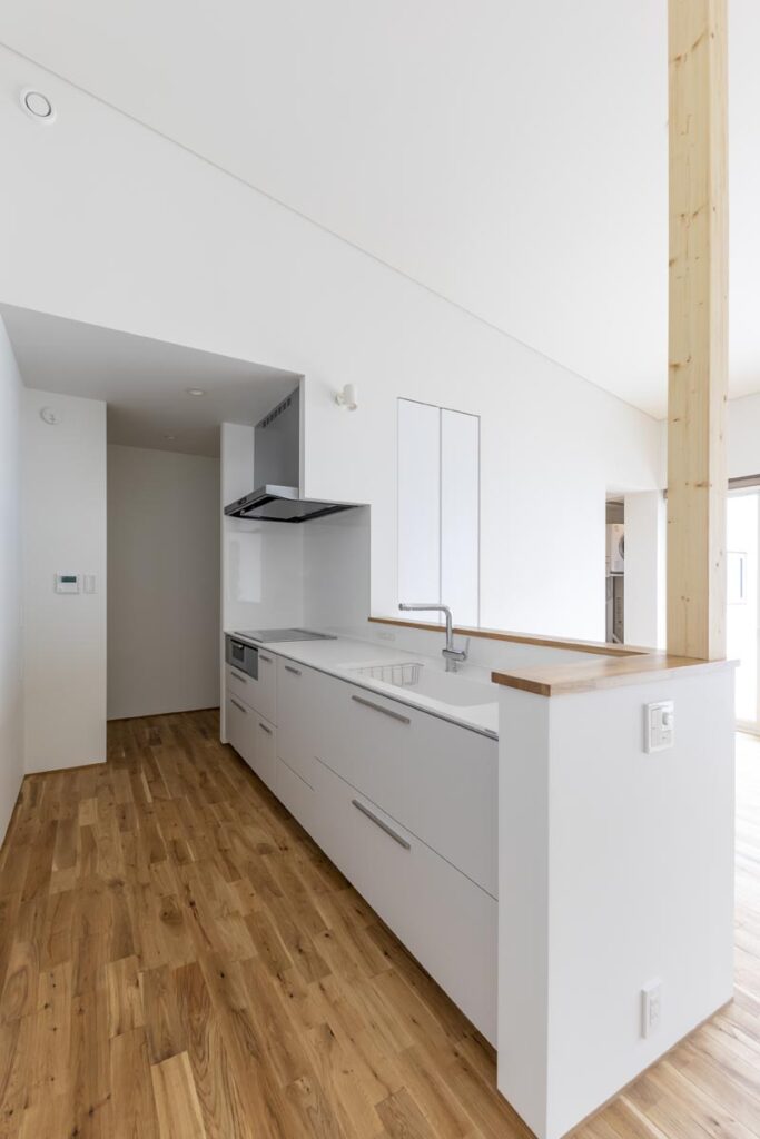 IHクッキングヒーターを採用したキッチン。奥はパントリーになっています。
