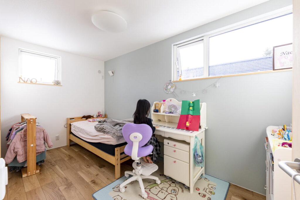子ども部屋と主寝室は、一面だけアクセントカラーを入れました。