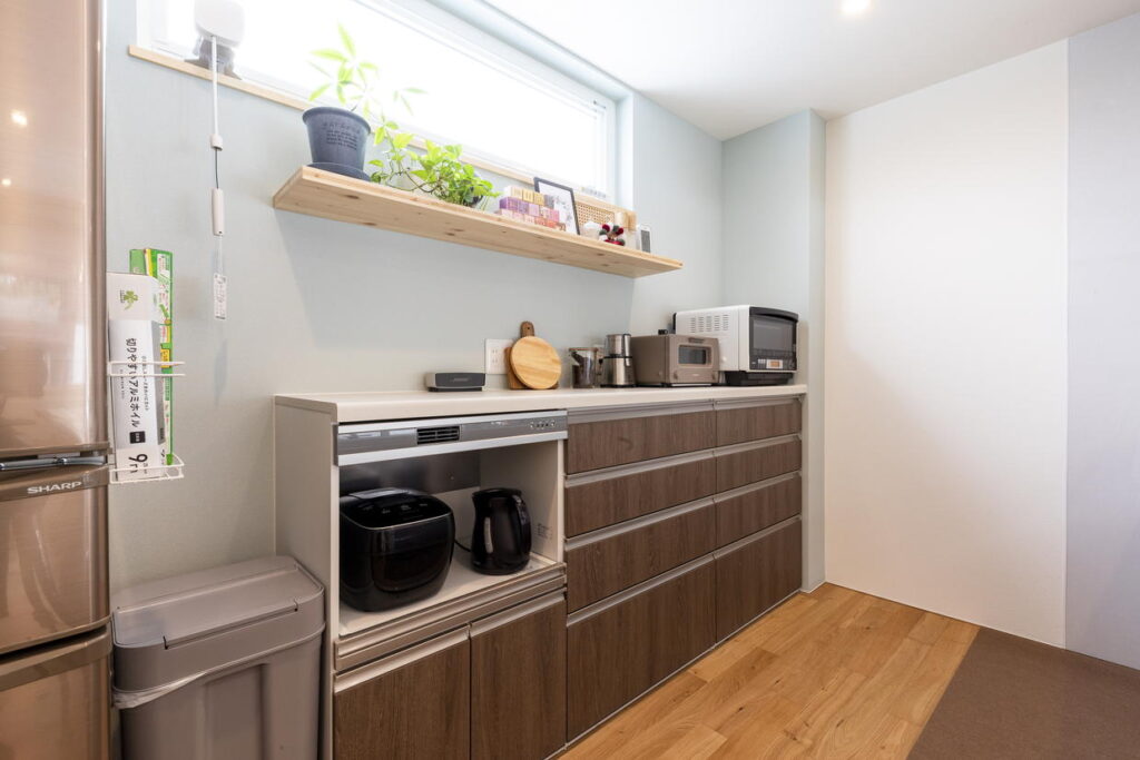 ご夫婦が並んで料理できるよう、天板が広くて両面収納になっているLIXILを採用しました。