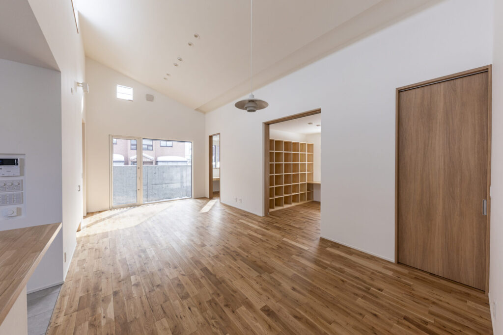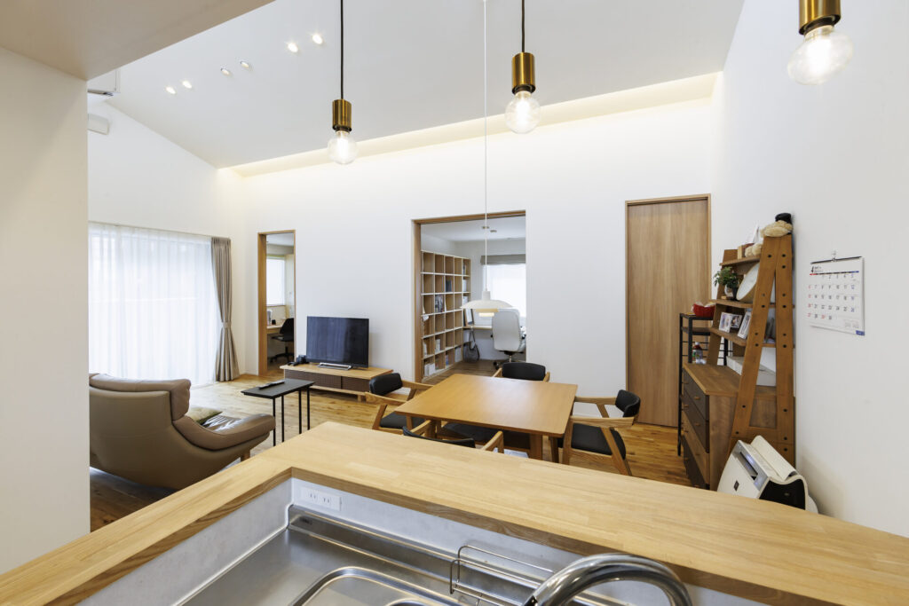 広々としたLDKは、家のほぼ中央に位置していて、日中も明るい光が差し込みます。