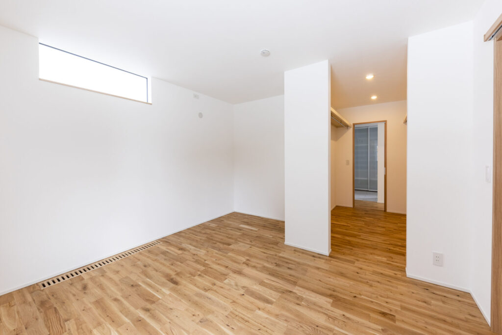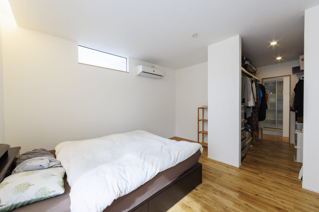 また、キッチンからはファミリークロークを経て、ご夫婦の寝室へとつながっています。この寝室からはリビングやトイレにも直接向かえる動線を作りました。