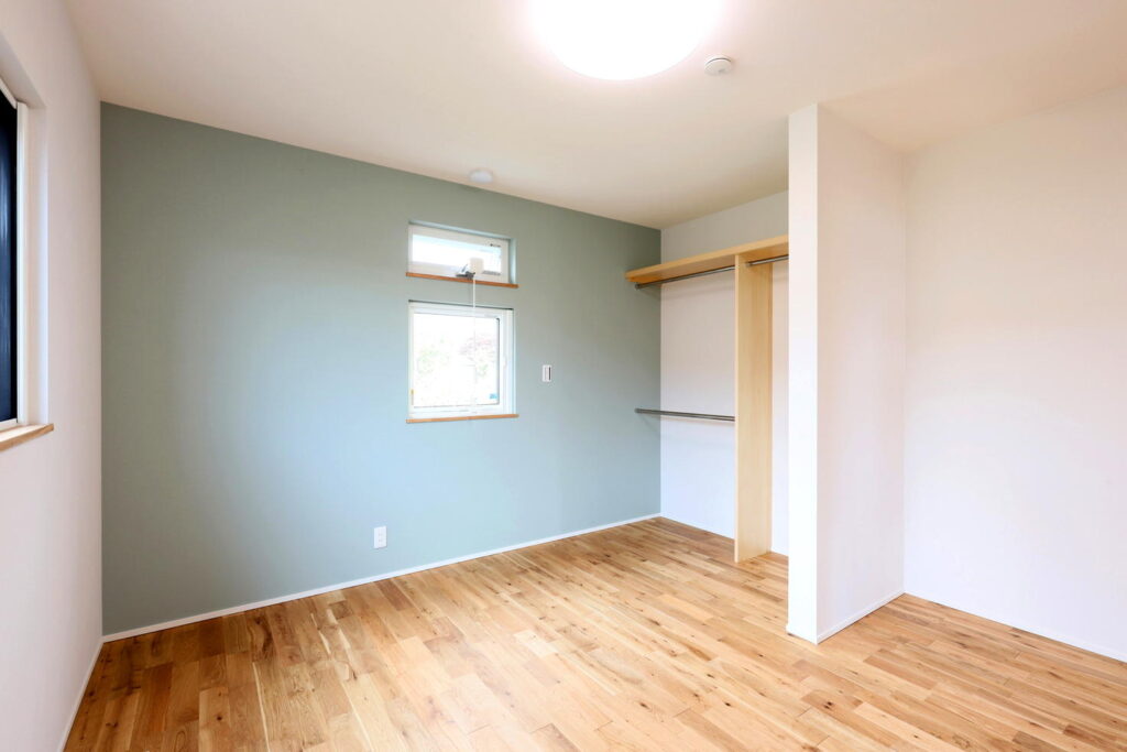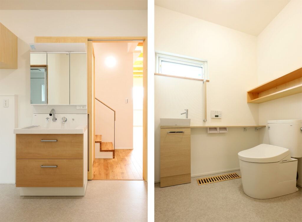 寝室の隣りにはユーティリティとトイレを配置しました。室内はすべて段差のないバリアフリー仕様で、移動の負担なく暮らせてお母さまにとっても安心です。