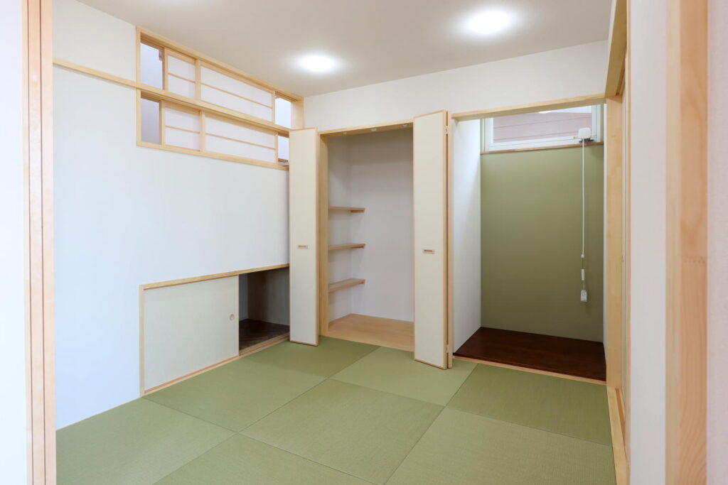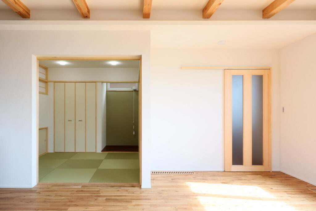 階段からの光は、壁上部にある障子から和室にも届き、明るい室内になりました。