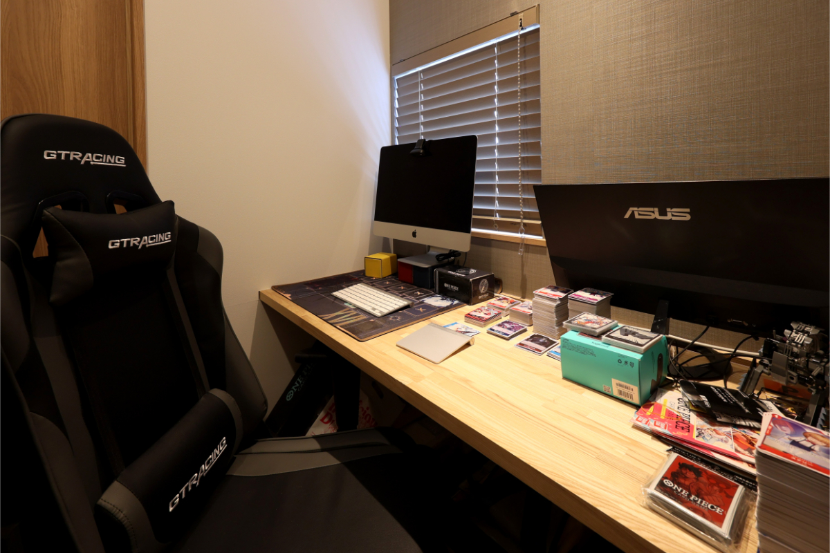 ご主人の希望で作られた書斎は、趣味に没頭できる大人の秘密基地のような空間です。