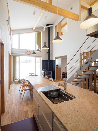 吹き抜けの大空間に薪ストーブのある家 札幌市