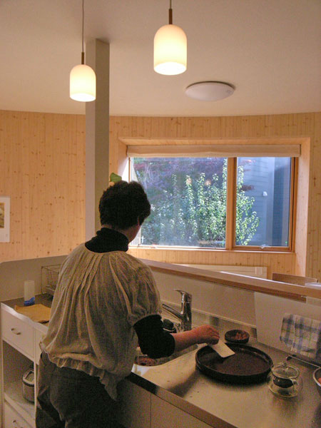 奥様が長時間を過ごすキッチンから見える窓には緑が望む。女性の目線に立った奈良さんの優しさが伝わる