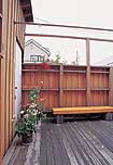 写真:通行者の視線を遮るようにしつらえたウッドデッキは、家族で焼肉を楽しむなど、第2のLDとして大活躍です。