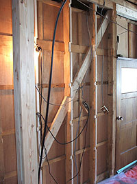壁内に柱を補強して、そこに30*105の筋違で壁倍率を1.5倍にして耐震補強をした部分です。